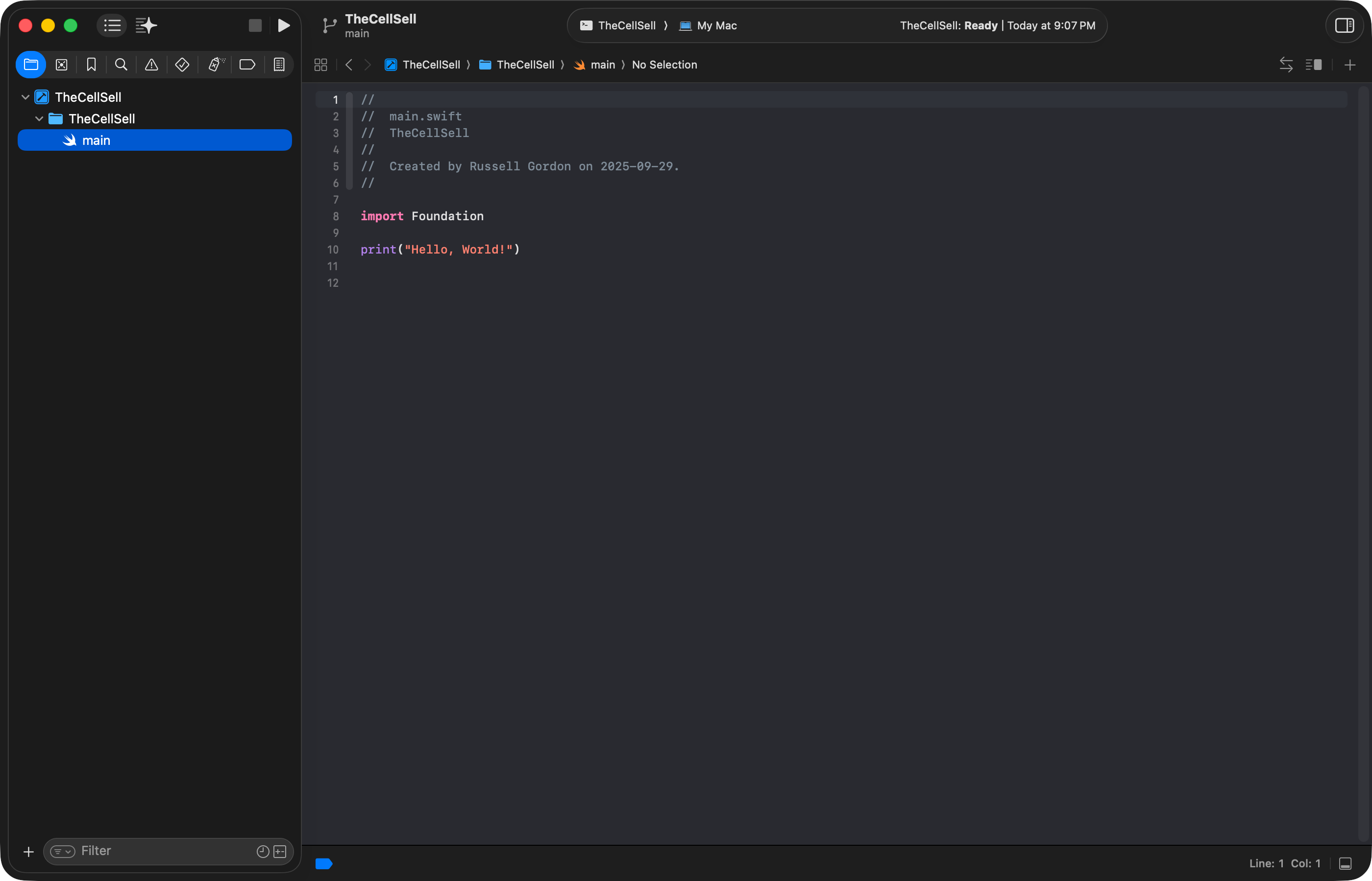 Normally, no changes are required here. So, switch to the main.swift file using the Project Navigator at left: