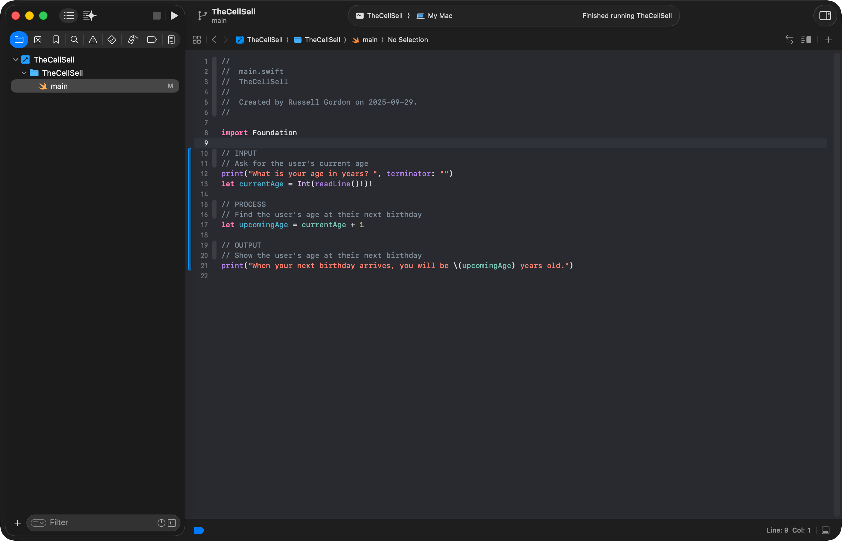 print("When your next birthday arrives, you will be \(upcomingAge) years old.")… like this: