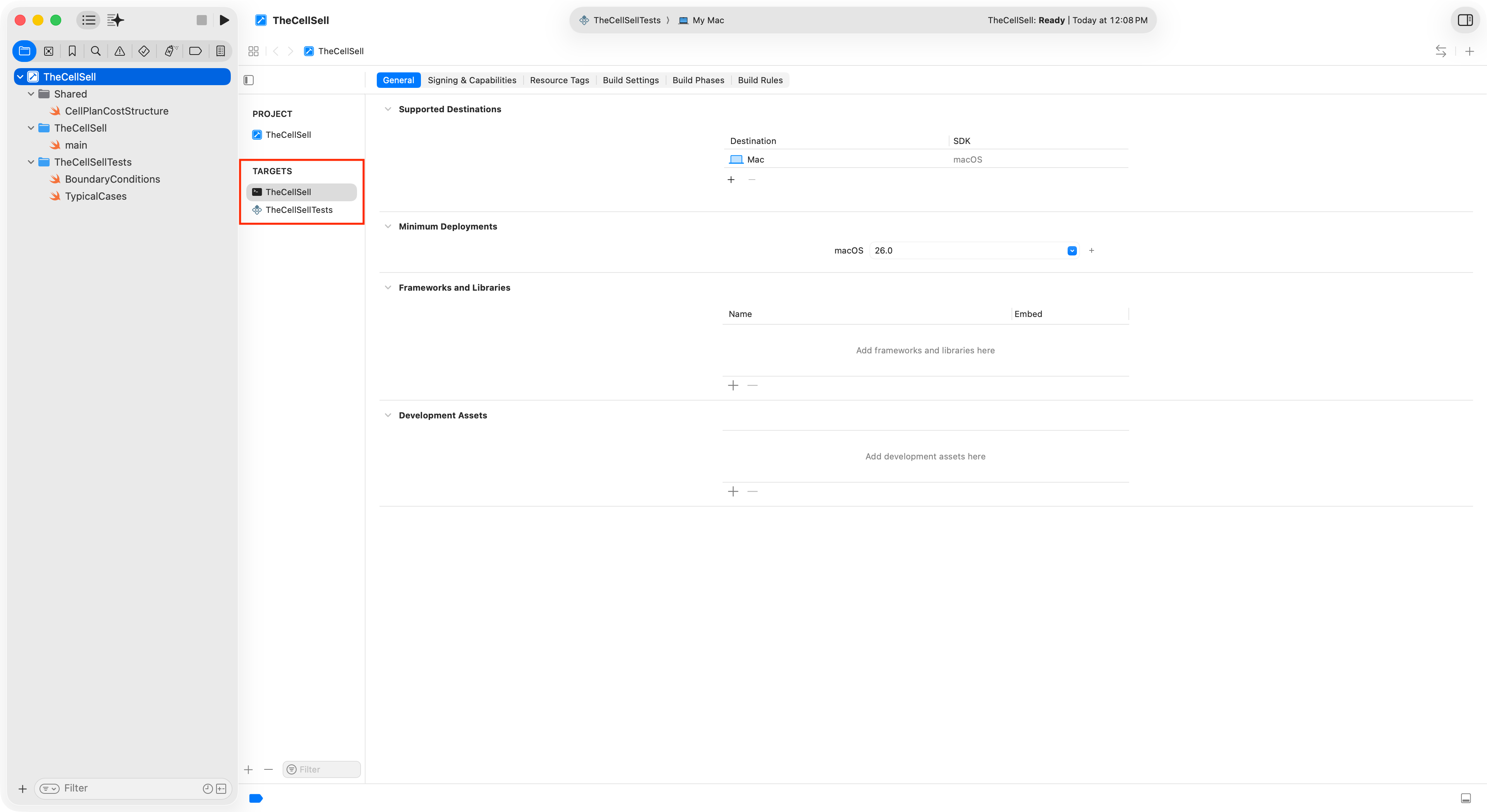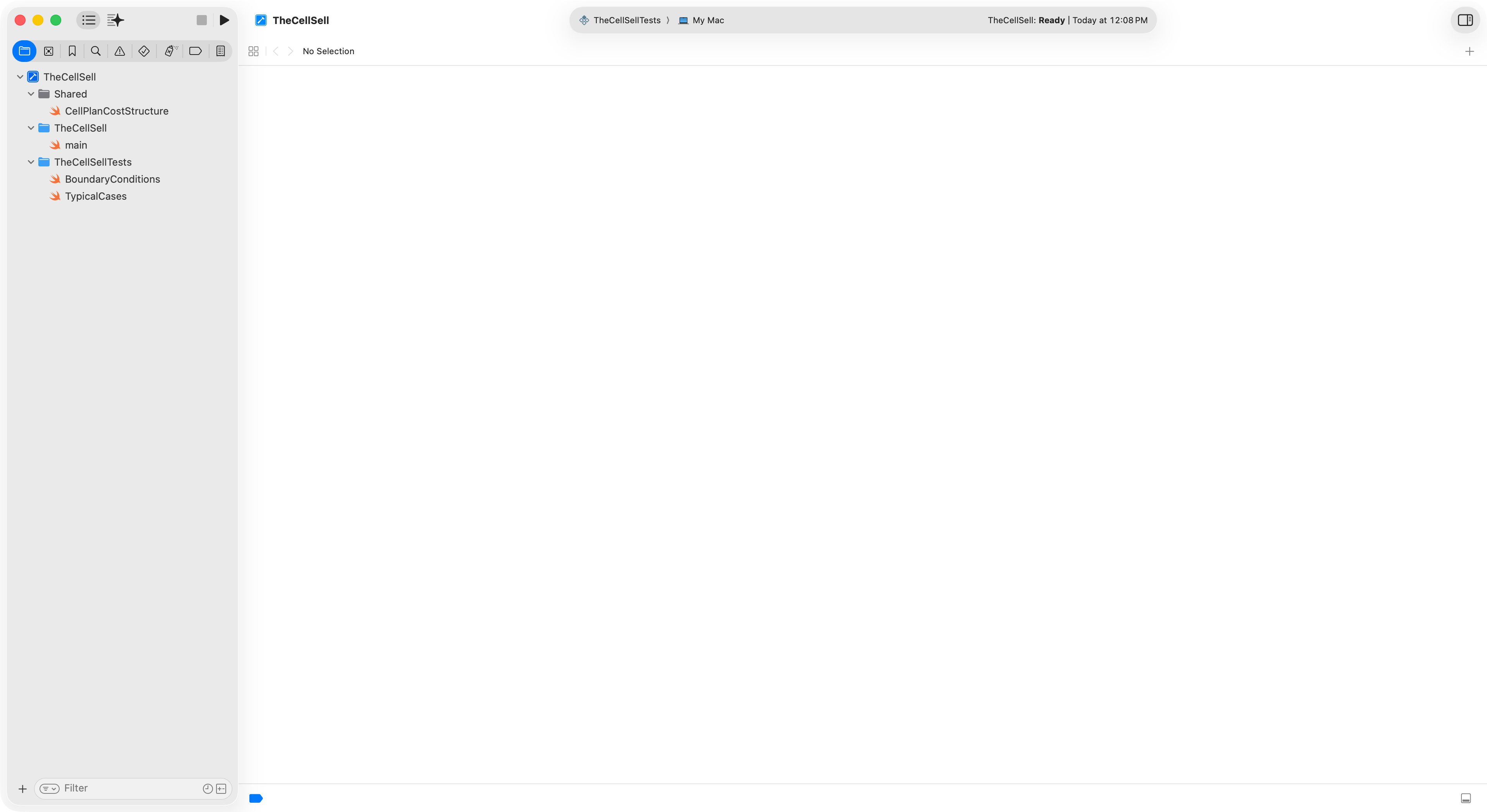 Tests are defined in two files under the TheCellSellTests group: