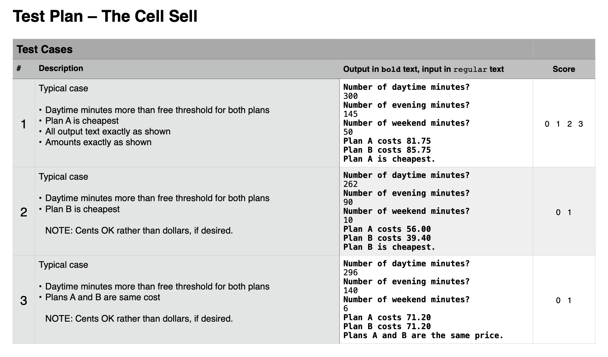 Notice how these mirror the tests that you used last week for verifying your Cell Sell solution: